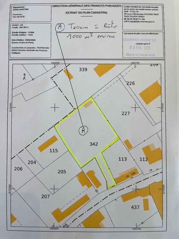 VENTEProche du village d'Auffay, vallée de la Scie, petite parcelle de 2120 m² environ (201m&...